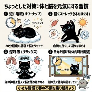 海外旅行から帰ってきたあとの「時差ボケ」に近い状態が、春の体の中で起きているとイメージすると分かりやすい。